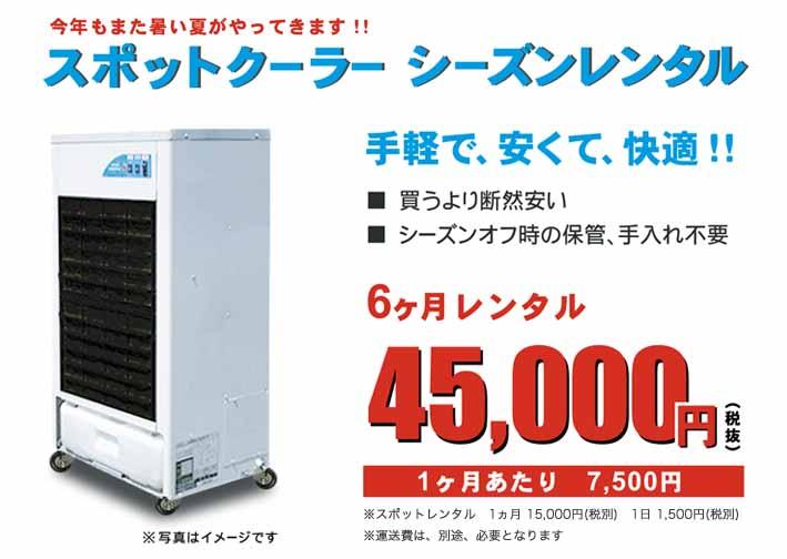 今年も暑い夏がやってきました。 シーズンレンタルだと 買うより断然安い シーズンオフ時の保管、手入れが不要 スポットクーラー導入をご検討中のお客様におすすめです。 詳しい内容はお問い合わせください。