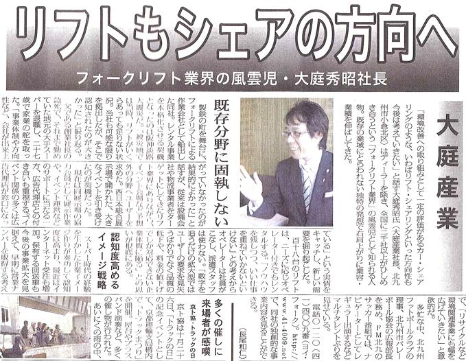 物流・運送・ロジスティクス業界の総合専門誌「物流Weekly」に弊社代表取締役 大庭秀昭のフォークリフトのレンタル業展開に関する記事が掲載されました。